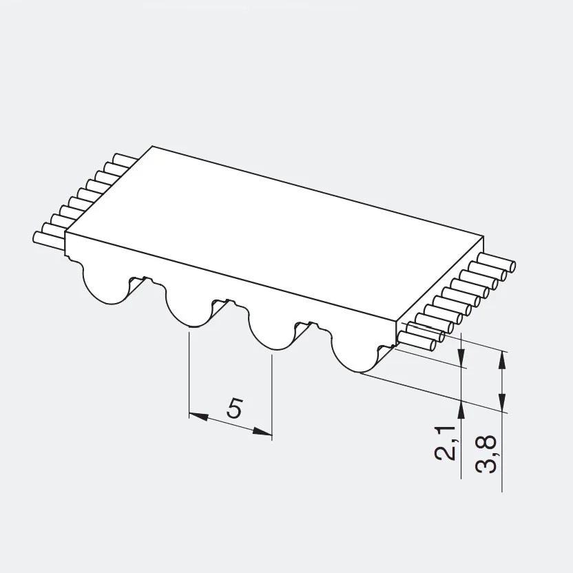 • Perfil: HTD (High Torque Drive) – passo 5 mm